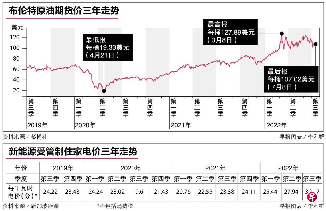 国际原油期货价格因美元飙升和经济衰退担忧而在一个月内从每桶123美元以上下跌逾15%至100美元,但仍比去年底70多美元的水平高出35%。受访市场人士多数认为原油的供应风险仍在,需求基本面也稳健,为油价提供支撑,因此本地电价不大可能显著回跌,除非油价暴跌至去年低于70美元的水平。