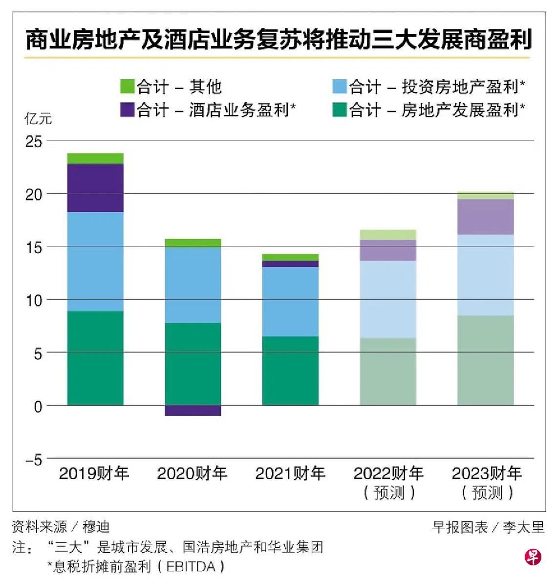 穆迪分析师郑宇声在报告中说:“防疫措施放宽后,零售业销售额和人流量增加,将减少对租金回扣的需求,支持零售资产的盈利回弹。而新的优质办公资产供应有限,员工重返办公室推动需求上升,这将支持办公租金。”