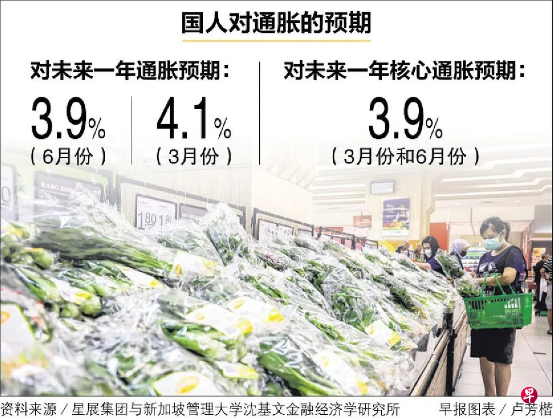 鉴于全球经济增长前景不明朗,本地居民预期未来一年的整体通货膨胀率从三个月前的4.1%,略减至3.9%。