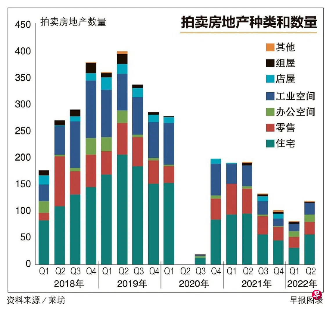 房地产贷款利率上升导致一些业主放弃持守房地产,本地第二季的拍卖房地产环比增加47.5%至118个,其中近一半是在美国联邦储备局上个月大幅加息之后推出市场。