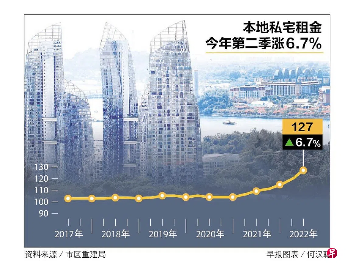 根据橙易产业发布的第二季私宅市场报告,本地私宅租金今年第二季的增幅从前一季的4.2%升至6.7%,为2007年第四季以来最大。分析师认为,通货膨胀压力和利率上升可能促使房东调高租金,下半年租金预计进一步上涨,全年可增长介于13%至18%。
