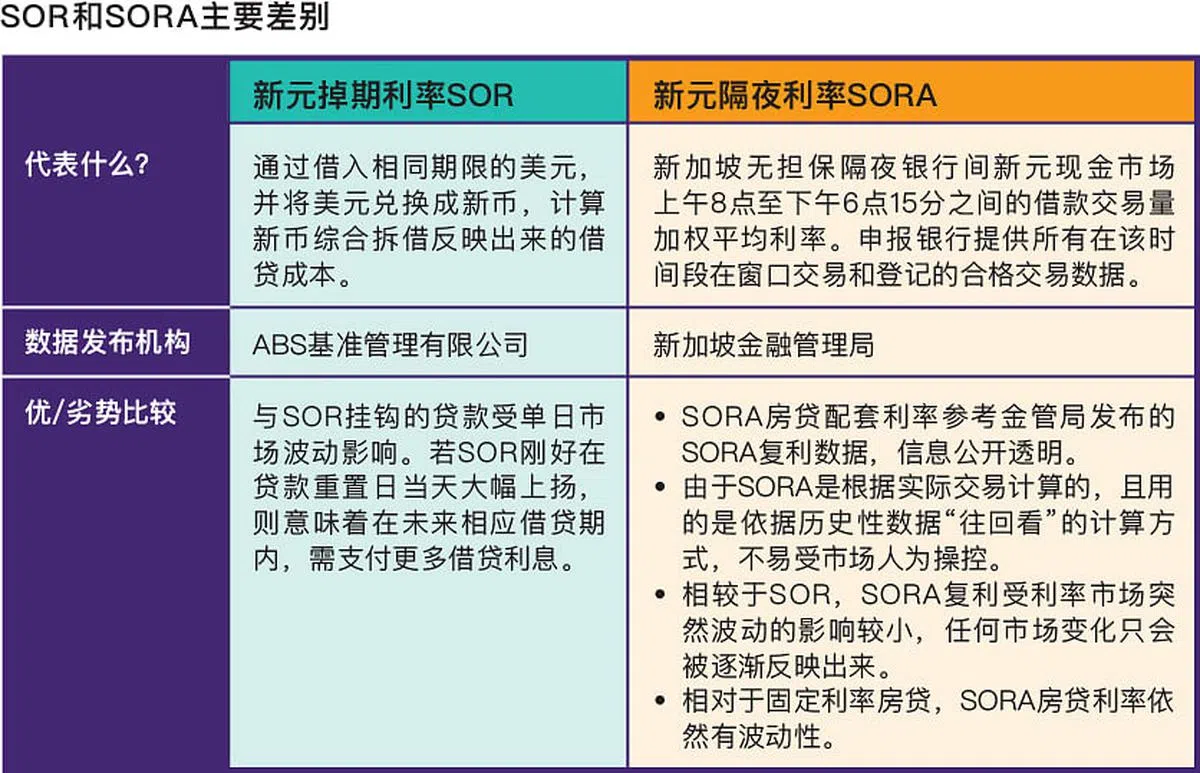 答:过去三年来各大银行都为房贷客户顺利地由SOR向SORA基准利率转换做足了准备,并自去年起陆续推出了SORA转换配套。它与三个月期SORA复利挂钩,转换时既无需缴纳转换配套的行政费用(限2023年6月30日前),也没有额外锁定期。需要注意的是,与SOR相比,SORA利率没有信贷和期长溢价,所以在房贷配套转换时会纳入必要的利差调整以反映这些溢价。而在转换之后,房贷利率会出现怎样的变化主要还是取决于三个月期SORA复利的高低。