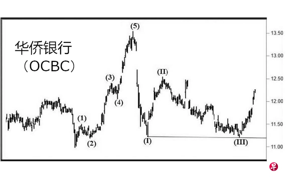 本栏于去年12月7日曾论及这只股票由于跌势甚急,造成介于11.52元与11.55元及介于11.71元与11.74元出现缺口;短期回扯或将填补这两个缺口。当时股价为11.29元左右。12月8日股价上升至11.49元,并于当天以“主要转向”信号为图中的第(1)波画下句号;接着回扯至12月20日的11.18元,此为第(2)波。今年元月5日股价升试11.74元,且将上述第一及第二个缺口填补。元月17日股价上升至12.40元完成了第(3)波。2月17日股价上升至13.54元完成了第(5)波,旋进入跌势。2月23日股价跳空直下12.33元,同时也在介于12.69元与13.16元留下缺口。3月9日股价下跌至11.22元,随即于当天以“主要转向”信号完成一个跌势“三角形”的第(I)点,过后回扯至3月29日的12.53元,此为第(II)点;接着以五细波缓缓下滑至7月15日的11.20元,旋结束了第(III)点。估计股价目前正处于第(IV)点升势,一旦结束,股价当向下填补介于11.93元与11.82元及介于11.28元与11.22元的缺口。