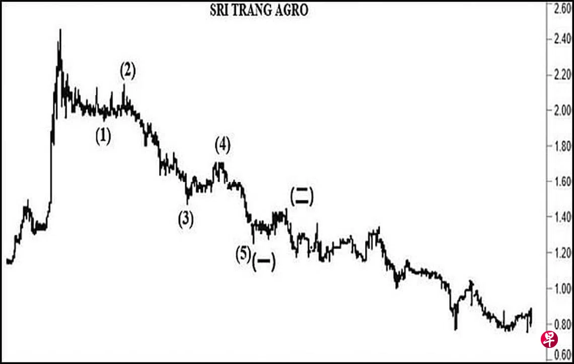 本栏于去年3月9日曾论及这只股票于3月1日一度上升至2.45元,期间“动力”信号却下降至1.58877处,一旦跌穿“中性线”,股价当有骤跌。当时股价为2.09元左右。同年4月15日股价下试1.94元完成了五大波中第(一)大波的第(1)波,过后回扯至5月6日的2.14元,并于当天以“转向”信号结束了第(2)波。同年7月13日股价下试1.47元完成了第(3)波,接着以三细波回扯至8月13日的1.70元,过后三度试此价位未果,20日股价又升试1.70元的价位,旋于当天以“主要转向”信号结束了第(4)波。9月21日股价下跌至1.25元,且于当天以“转向”信号完成了第(5)波,同时也为上述的第(一)大波画下句号。同年10月26日股价回升至1.44元,此为第(二)大波,因此,估计股价目前正处第(三)波跌势,截至今年8月8日股价已经下跌至0.755元,由于其“动力”信号已经穿下上述的“中性线”直达负号界域的1.0196处,推动股价填补介于0.75元与0.73元及介于0.56元与0.535元的缺口自不在话下。