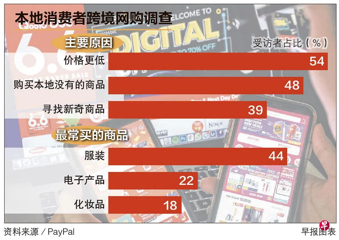 根据美国数码付款公司PayPal在星期三(8月17日)公布的跨境购物调查报告,大约四分之三的本地受访者表示,愿意上网从海外购买商品,这比冠病疫情前多了将近一倍。