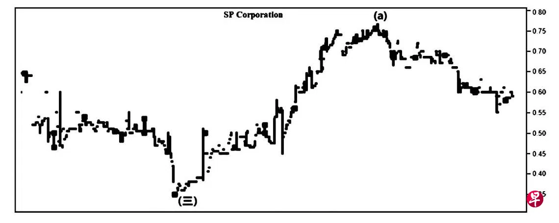 这只股票自从2011年7月15日上升至2.85元完成了三大波的C大波,随即进入五大波跌势。同年8月24日股价下跌至0.70元结束了第(一)大波,接着回扯至2013年元月16日的1.40元,此为第(二)大波,旋进入具五波走势的第(三)大波。2015年5月11日下试0.70元结束了第(1)波,过后回扯至2016年2月4日的1.195元完成了第(2)波。2016年9月16日下跌至0.36元结束了第(3)波,接着回扯至2017年11月10日的0.95元,遂完成了第(4)波,而第(5)波终于在2020年3月23日下探0.35元时顺利结束,同时为第(三)大波画下句号;过后回扯至2021年9月15日的0.765元,并于每周及每月一杆图皆以“主要转向”为第(四)大波中的(a)波画下句号。因此,股价目前正处(b)波下调,一旦结束,当回升填补介于0.70元与0.72元、介于0.75元与0.80元及介于0.85元与0.90元的缺口以完成(c)波,过后重返跌势,毕竟其“动力”信号随时会跌穿“中性线”进入负号界域。