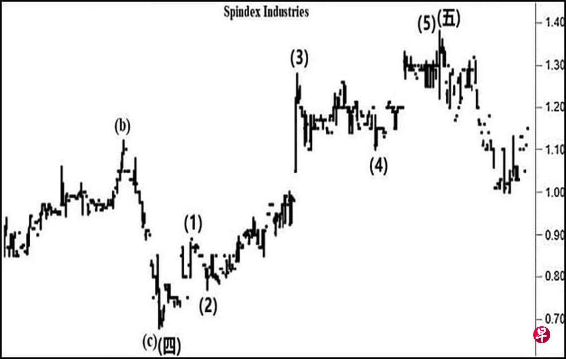 本栏于2020年6月3日曾论及这只股票于2017年11月13日上升至1.17元为C大波画下句号。估计股价将下跌,并当填补介于0.80元与0.74元及介于0.73元与0.72元的缺口。当时股价为0.80元左右。实际上,上述的1.17元应为源自2009年4月30日从0.13元上升以来,五大波升势中的第(三)大波。2019年4月2日股价下跌至0.78元完成了(a)波,接着回升至2020年元月22日的1.12元,此为(b)波。同年4月6日股价下探0.68元结束了(c)波,同时为第(四)大波画下句号,旋进入具五波走势的第(五)波。同年6月9日股价上升至0.89元完成了第(1)波,旋回扯至8月4日的0.77元,此为第(2)波。2021年2月15日股价上升至1.28元结束了第(3)波。10月22日股价上升至1.38元结束了第(5)波,同时为第(五)大波画下句号,遂进入跌势。今年6月17日股价下试1.00元,同时将介于1.05元与0.98元间的大部分缺口填补,估计跌势当持续,填补介于0.90元与0.85元间的缺口也就不言而喻了。
