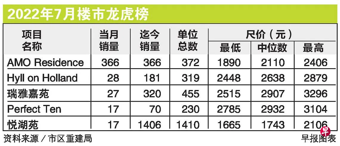 坐落于中央区以外(OCR)的宏茂桥私宅项目AMO Residence开盘一天内几乎售罄,带动7月份的私宅销量强劲上升。