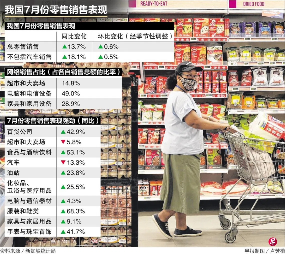 新加坡统计局星期一(9月5日)公布的最新零售销售指数(Retail Sales Index)显示,7月份零售总额约为39亿元,其中网络零售约占12.7%,与6月份持平。