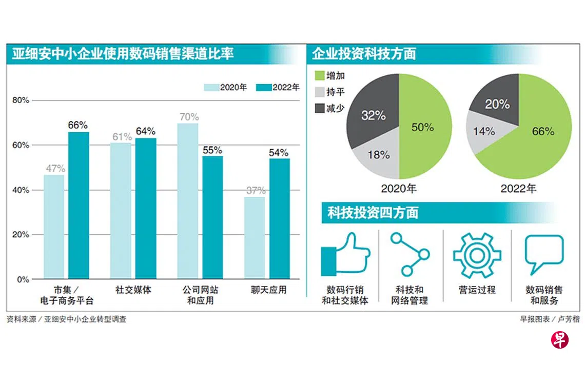 亚细安中小企业转型调查显示,66%亚细安中小企业有意增加科技投资,尤其是在数码营销、客户互动、销售、网络管理和营运方面。