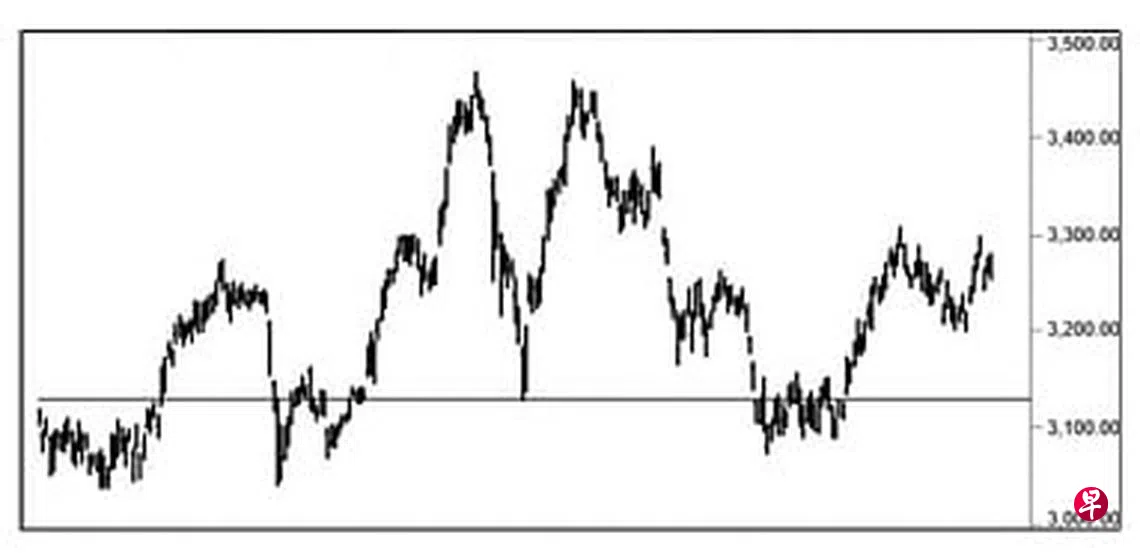 本栏于上周一(12日)曾论及指数短期升势尚未结束,因此,随时会将介于3271.95点与3273.48点间的缺口填补,过后再向下填补介于3238.89点与3233.61点及介于3227.48点与3210.83点的缺口。当时指数为3262.95点左右。见报当天指数骤然上升至3279.75点,不但将上述第一个缺口填补,同时也在介于3264.76点与3262.95点间留下缺口。13日股价再接再厉的跳空上升至3297.59点,又将介于3289.50点与3301.96点间缺口的一部分填补,同时在介于3278.84点与3274.72点间留下缺口,无奈回升仅昙花一现,14日指数竟然跳空直探3241.36点,不但将上述第六及第四个缺口填补,同时又在介于3266.32点与3290.08点间留下缺口;15日指数回升至3277.62点,遂将此缺口的一部分填补,同时又在介于3260.73点与3258.02点间留下缺口。16日指数上升至3279.68点,进一步填补了上述第六个缺口的一部分;过后一度下试3250.51点,又将上述第七个缺口填补。因此,估计海指当向下填补上述第二及第三个缺口,并试3128.06点的支撑线。