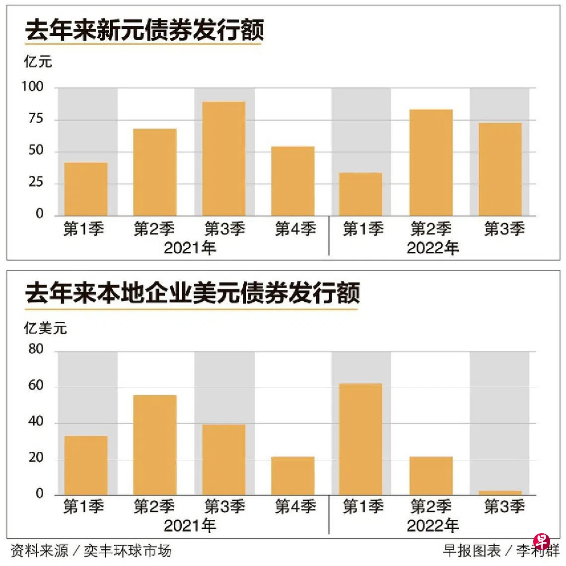 另一方面新加坡企业发行的美元债券,第三季只有2亿美元(2亿8000万新元)的发行额,远低于第一季的62亿美元和第二季的21亿5000万美元。