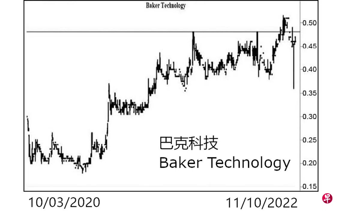 本栏于去年9月22日曾论及这只股票随时会将介于0.36元与0.355元的缺口填补以完成(c)波,过后当进入中期升势,并将填补介于0.53元与0.54元的缺口。当时股价为0.365元左右,同年9月23日却下试0.355元,遂将上述第一个缺口填补,接着迅速回升。10月11日股价上升至0.425元;14日骤然下跌至0.39元,造成介于0.40元与0.41元出现缺口,19日股价急升至0.465元,旋将此缺口填补。10月21日股价升试0.48元未果,随即进入调整。11月16日股价骤跌至0.41元,遂在介于0.41元与0.425元出现缺口;11月29日股价终于下探0.38元,接着又于12月8日回扯至0.42元,几乎将此缺口全予填补。今年7月6日回落至0.38元后迅速回升,8月23日突破0.48元的阻力线,直试0.49元,8月31日上升至0.515元,10月4日骤然下试0.36元,并当天以全天最高的0.455元的价位闭市,意味着股价即将回升,不但穿上位于0.48元颠倒“头肩形”的颈线,且当填补上述第二个缺口,再升试位于0.56元的重大阻力线。