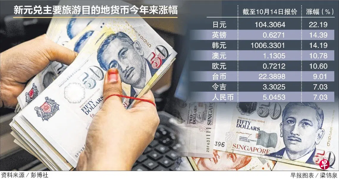 今年以来,新元除了兑美元下跌逾5%,兑欧元、英镑、日元、澳元、韩元、人民币、台币和令吉都显著升值,升幅介于7%至22%。这些都是国人热爱的旅游目的地,除了中国,都已开放旅游。