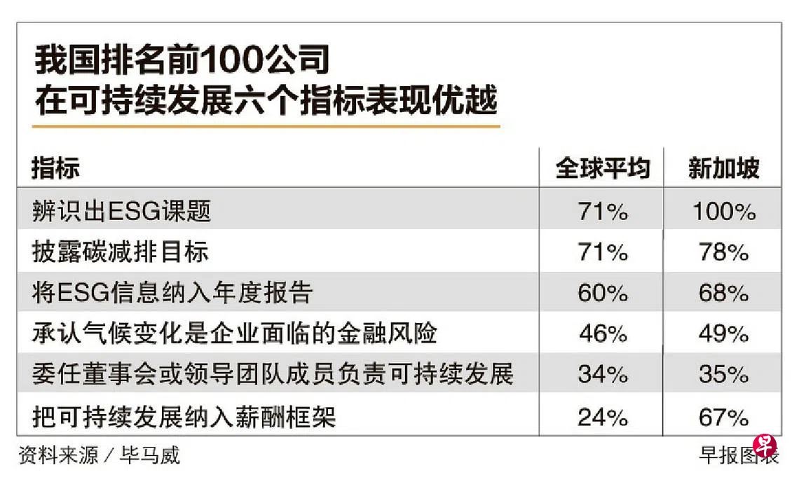 一项最新调查显示,我国排名前100的公司在可持续发展报告(sustainability reporting)的12个指标中,有六方面的表现优于全球平均水平。