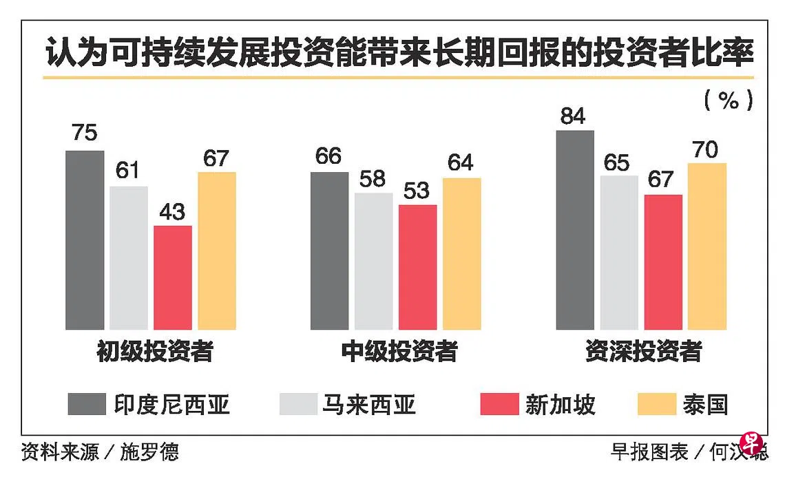 报告:约七成本地投资专家认为 唯有可持续投资能长期获利订户赠阅文章本地熟悉投资交易的投资者大多认为,可持续发展投资是取得长期盈利的唯一投资方式。全球资产管理公司施罗德(Schroders)的最新报告显示,在自认是投资专家或资深投资者的新加坡受访者当中,大约67%相信可持续发展投资将能确保长期获利,不过这低于区域和全球水平。在东南亚和全球受访者当中,分别有72%和68%有这类看法。可持续发展投资上一篇报告:消费者需求和国际航空旅游恢复 中小企业务连续七季度扩张下一篇评股论经购买此文章