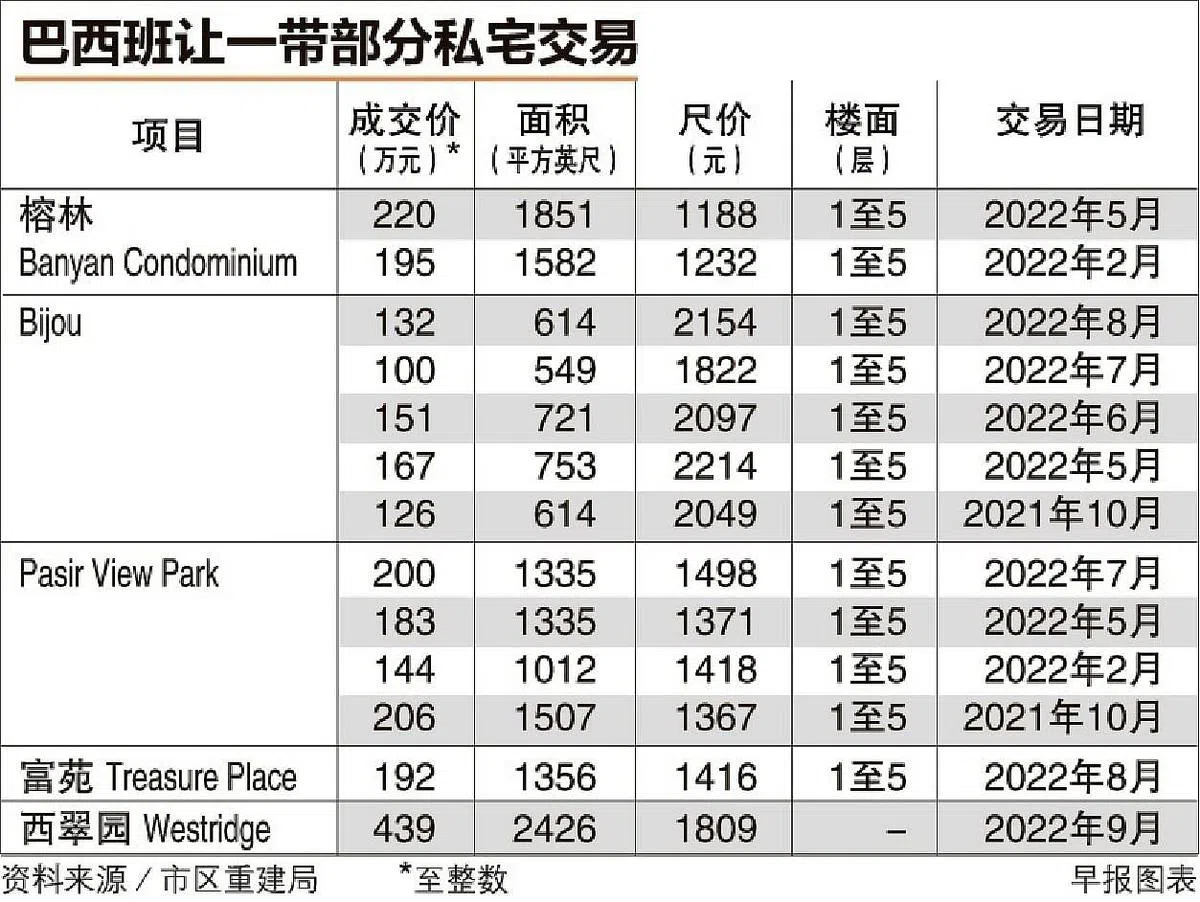 除了非有地私宅,巴西班让一带也提供有地住宅选项,如建有排屋的西翠园(Westridge)住宅区。今年9月,这个住宅区有一间占地2426平方英尺的单位转售,尺价为1809元。