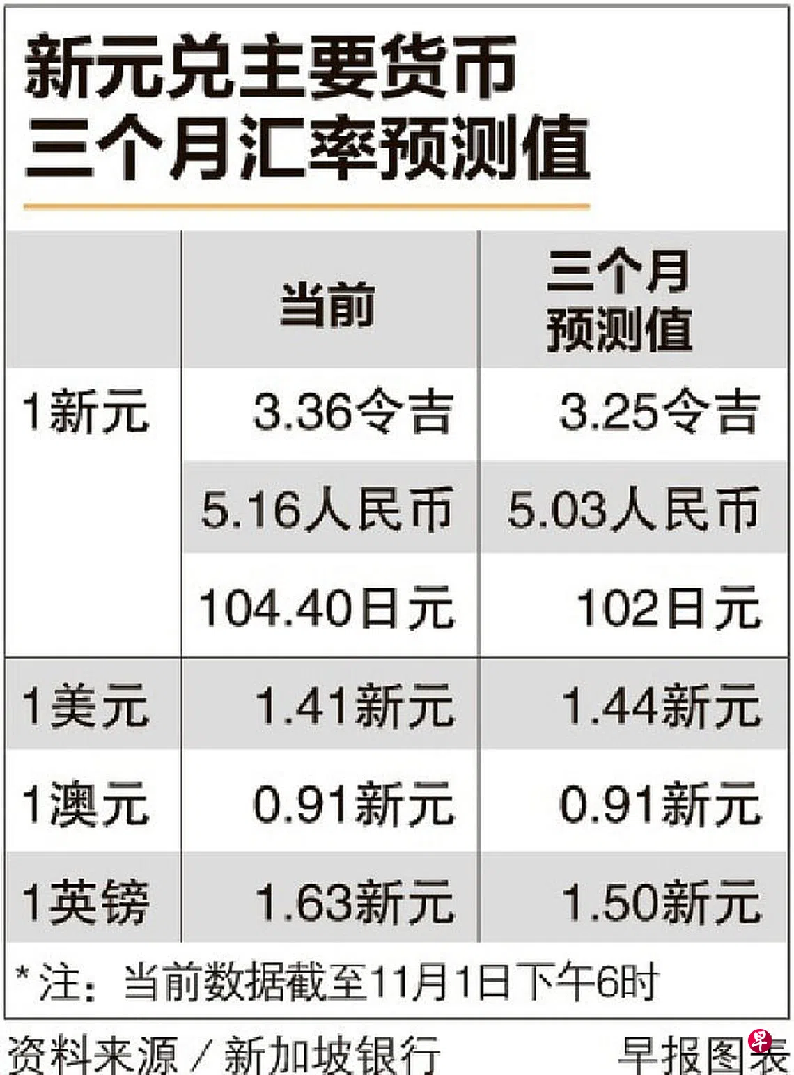 自从去年10月金管局开始收紧货币政策以来,新元兑大多数主要贸易伙伴的货币汇率一直在走强。分析师预计这种势头或将持续到今年底。