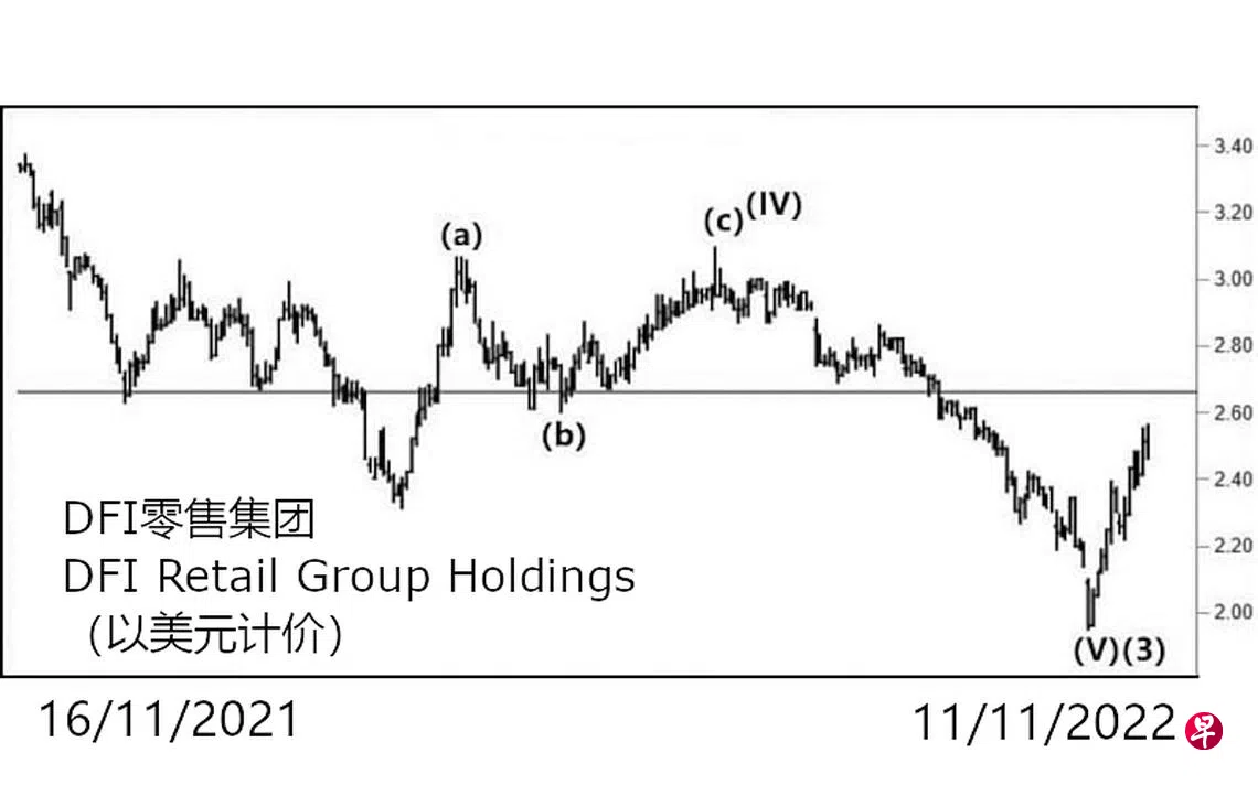 本栏于今年6月23日曾论及这只股票于4月5日上升至3.06元后出现调整,过后于4月28日回落至2.61元。不过,短期回扯将会持续,升逾3.06元的阻力点当无悬念,当时股价为2.93元左右;果然,6月28日股价升破上述的3.06元直达3.09元,完成了自今年3月17日从2.31元已三波回扯的(c)波,期间(a)波于4月5日升试3.06元,并于当天以“转向”信号完成,过后下调至5月10日的2.60元,此为(b)波,因此,上述的3.09元既为(c)波,同时也是股价从2020年6月9日自5.17元下跌以来,第(3)波中的第(IV)波。7月29日股价骤然下跌至2.74元,同时在介于2.88元与2.92元间留下缺口。8月5日股价下试2.69元,8月19日一度回扯至2.86元,无奈未能将此缺口填补,就转而回落。10月25日股价下探1.95元,遂于其每周一杆图以“转向”信号结束了第(V)波,同时为第(3)波画下句号。估计股价目前正处具三波的第(4)波回扯,且当试2.66元的阻力线后,重返跌势。