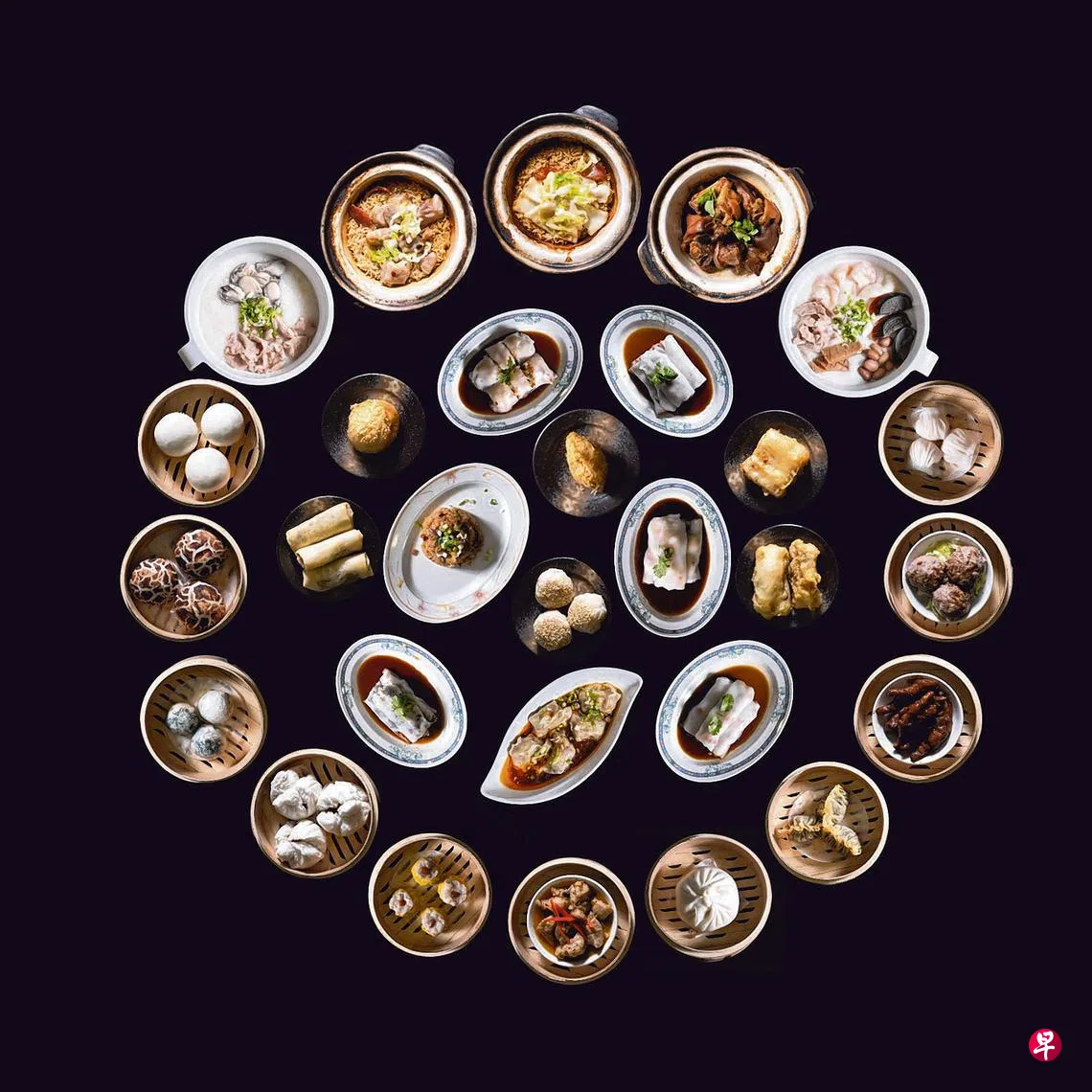 “五星”的菜单上有超过40款各式手工点心及粥品,点心除了各式肠粉是在摊位现点现做之外,其余的都是每天早上在中央厨房新鲜制作,再送到各摊位经由蒸、烘焙或炸等不同烹饪方式处理后热腾腾端上桌。至于粥品如皮蛋猪肉粥、鱼片粥等,皆由档口人员现煮。