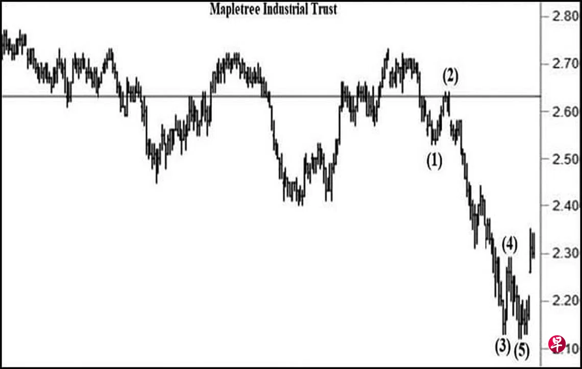 本栏于今年9月22日曾论及这只股票已经形成一个跌势“斜向交叉”,若以去年8月2日股价位于3.02元的第(三)点及今年5月25日股价下跌至2.40元的第(四)点价差,计自第(五)点,可测得基本目标为2.11元,当时股价为2.56元左右,见报当天股价下跌至2.49元,截至10月25日股价已经下滑至2.13元完成了上图中的第(3)波;过后回扯至10月28日的2.29元,遂结束了第(4)波,接着缓缓下滑。11月3日股价下试2.12元,完成了上述的基本目标;4日股价再试此价位未果,遂于当天以“转向”信号结束了第(5)波,旋止跌回升。11月11日股价骤然升试2.35元,由于升势甚急,造成介于2.26元与2.18元间出现缺口。估计股价目前正处于三波回扯,填补介于2.37元与2.38元间的缺口自不在话下,并可能升试2.63元的阻力线,过后向下填补上述第一个缺口。由于其每月一杆图中的“动力”信号已经进入负号界域的0.5378处,股价一旦跌穿位于1.87元的支撑线,当有骤跌。