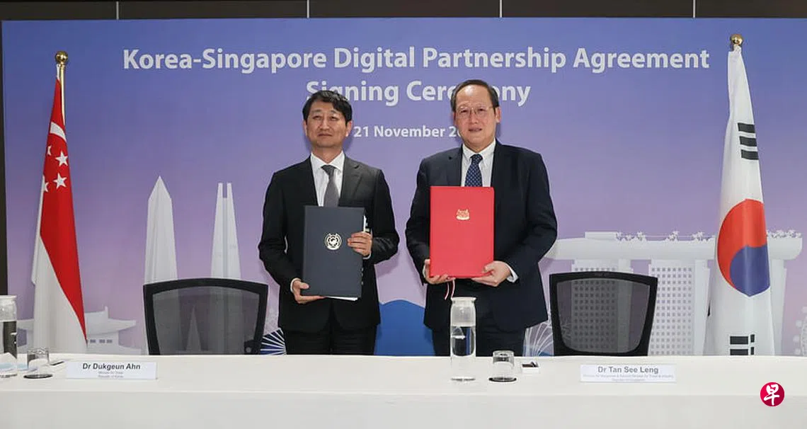 新加坡与韩国签署数码伙伴关系协定,合作制定具有前瞻性的数码贸易规则和规范,促进两国数码系统的兼容互通。