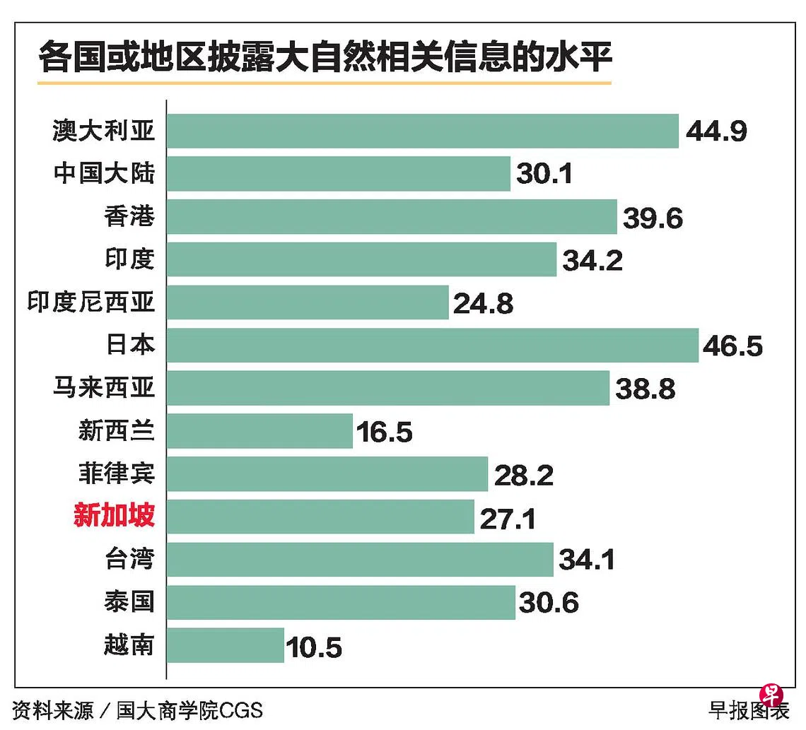 新加坡国立大学商学院的治理与永续发展研究所(Centre for Governance and Sustainability,简称CGS)星期二(11月22日)发布一份报告,分析亚太区600家上市公司披露保护大自然相关信息的表现。
