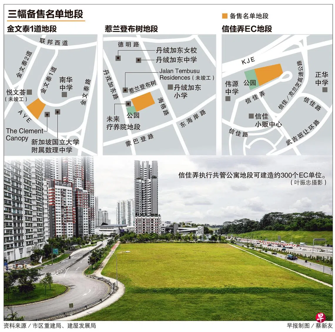 政府推出位于金文泰1道(Clementi Avenue 1)、惹兰登布树(Jalan Tembusu)和信佳弄(Senja Close)三幅备售名单地段供发展商勾出,预计地段共可建造约1625个住宅单位。其中,武吉班让一带的信佳弄地段属于执行共管公寓(EC)地段。