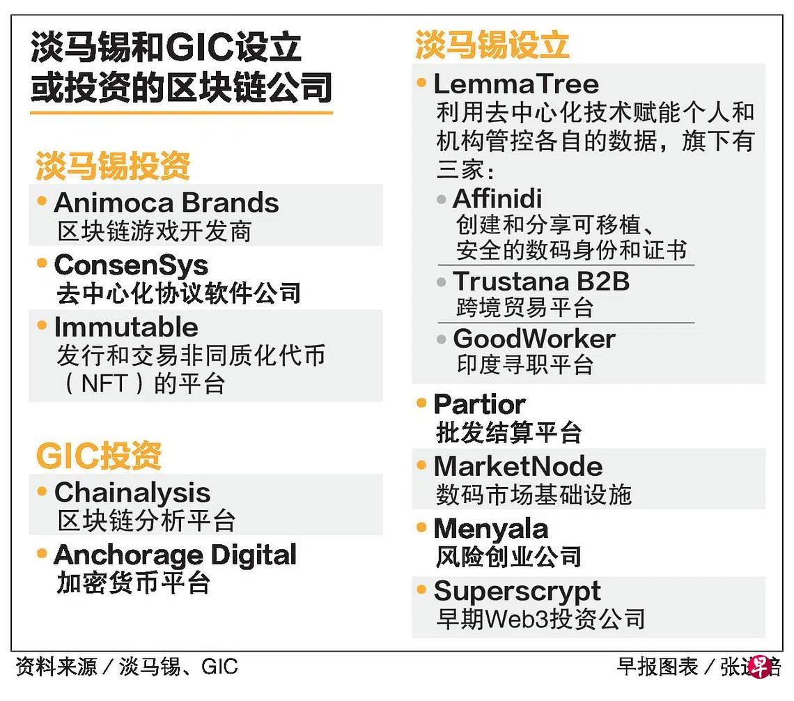 淡马锡控股提供给《联合早报》的资料指出,包括区块链在内的创新科技有潜力改变行业,创造更加互联互通的世界,淡马锡主要通过风险创业(venture building)和投资两个途径,获得区块链领域的曝险。