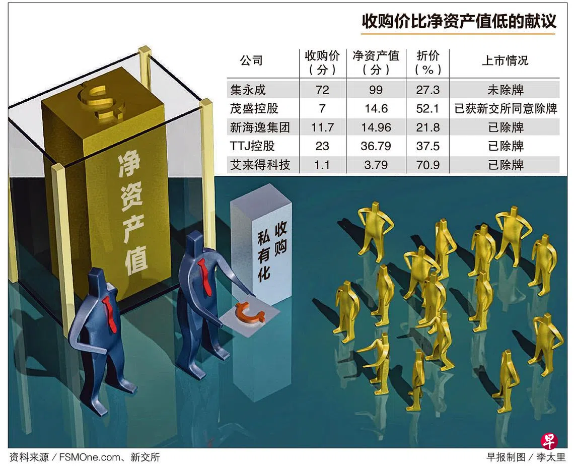 一些大股东趁股价低迷把公司私有化,却因为出价比公司的净资产值低许多,引起小股东反弹。