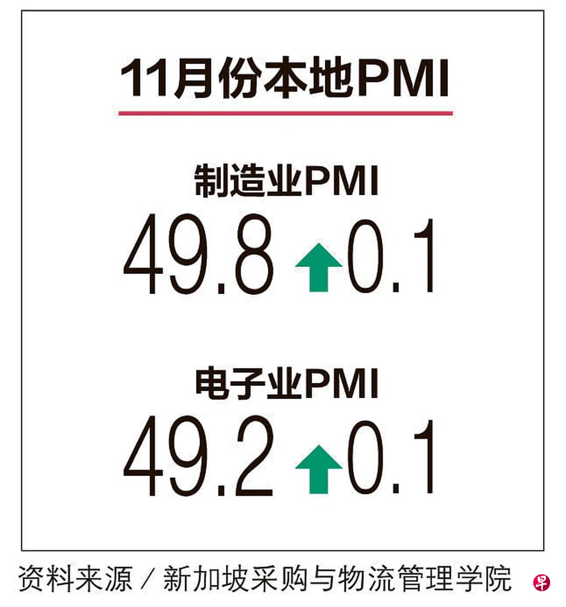 我国11月份制造业采购经理指数上扬0.1至49.8,主要是因为新订单、工厂产出和库存的萎缩步伐放缓。经济师估计制造业的疲态将延续至明年上半年。