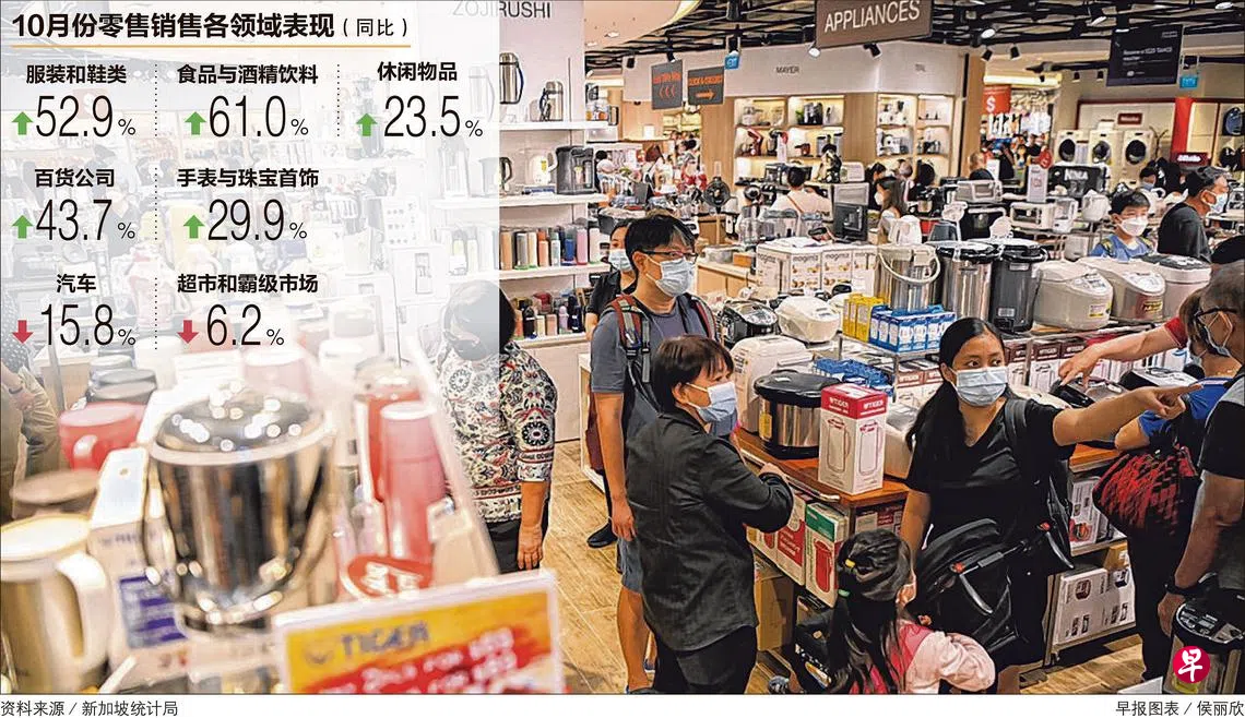 人力市场紧缩和会展活动恢复带动游客重返,促进了消费增长,本地零售销售连续八个月增长,今年10月同比上扬10.4%,增幅低于9月的11.3%。