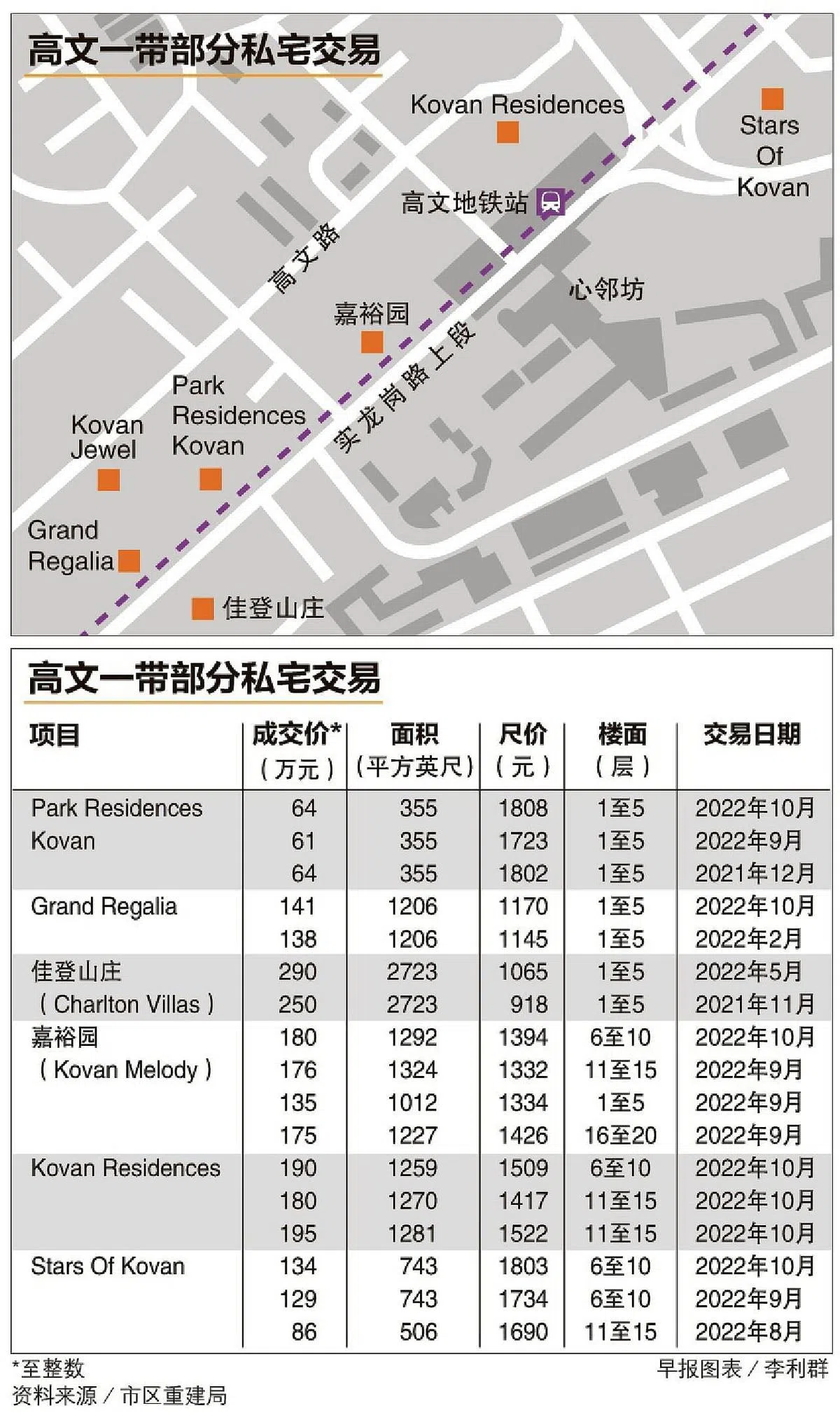 嘉裕园旁的Kovan Residences共有521个单位,建于2011年,屋龄较小,价格也稍高一些,最近一个单位成交尺价为1509元。