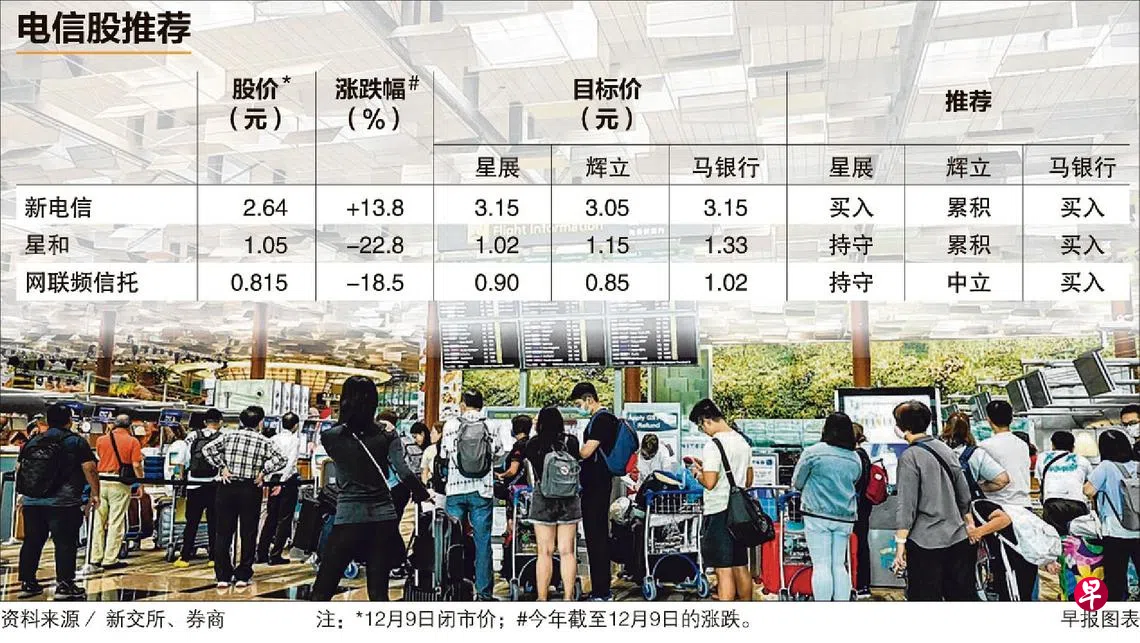 富时海峡时报家族的电信指数今年截至12月9日取得8.5%涨幅,主要反映大量资金流入购买新电信(Singtel)股票,促使股价和指数取得耀眼表现。
