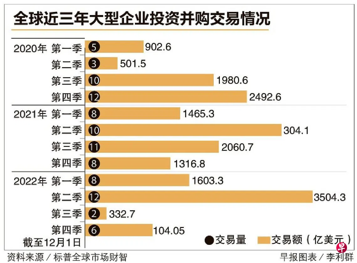 根据标普全球市场财智(S&P Global Market Intelligence)一份报告显示,去年11月至今的全球20大企业投资并购交易中,GIC参与的两宗交易分列第10位和14位,交易额分别为200亿1000万美元(271亿7100万新元)和170亿美元。