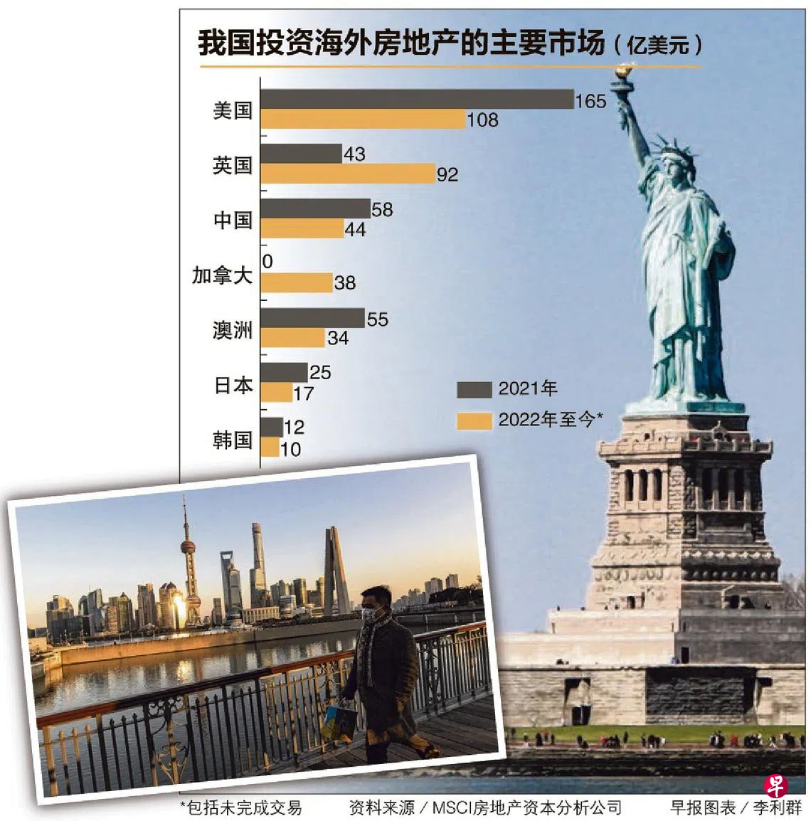 本地投资者今年至今的海外房地产投资额较去年减少14%,但超越2019年至2020年的平均水平近一倍。分析师预计,全球利率上升以及宏观经济不明朗等因素,可能促使投资者在来年采取谨慎态度。