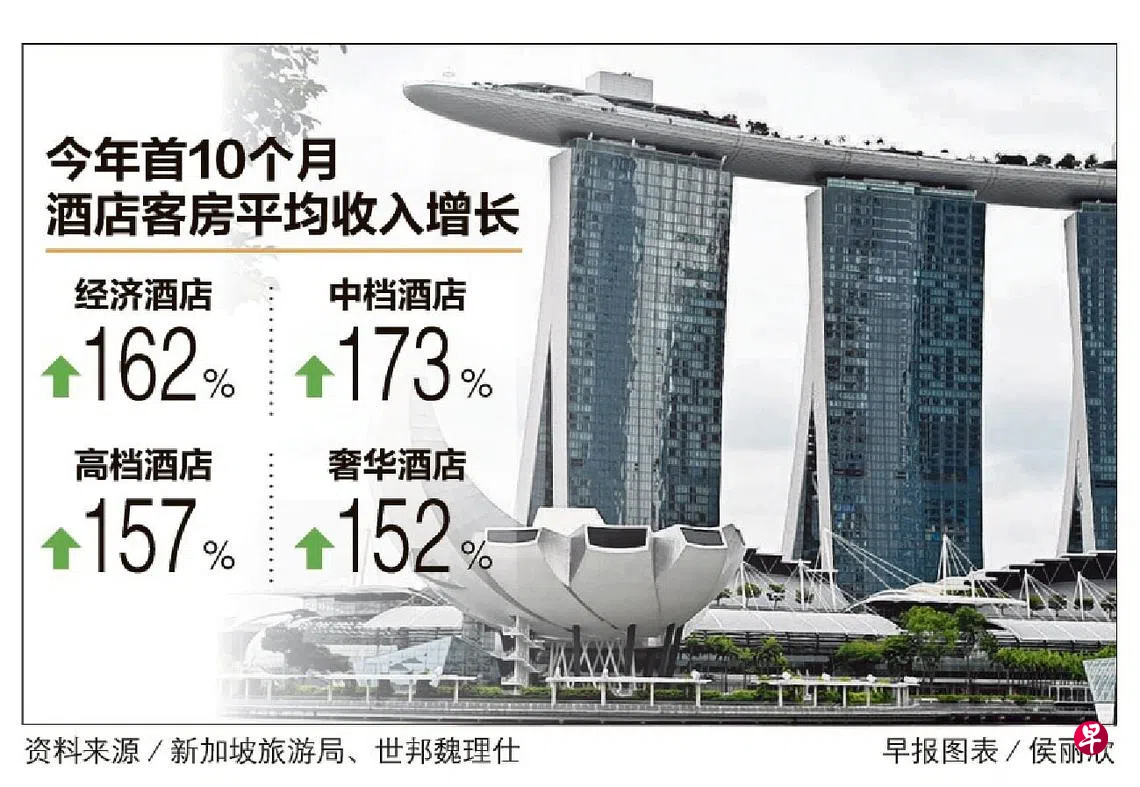 我国放宽入境限制加上会展活动恢复等 酒店客房收入收费率入住率皆增长订户赠阅文章回顾与展望本地整体酒店今年截至10月底的日均客房收费率同比增加51.5%至229.60元,为历来第三高,酒店客房平均收入同比提高106.8%至169.60元。与此同时,本地酒店平均入住率达到72.5%,比去年全年的54.0%高。韩宝镇 报道酒店游客上一篇按图索骥下一篇布莱德岭一永久地契洋房求售 要价2300万元购买此文章