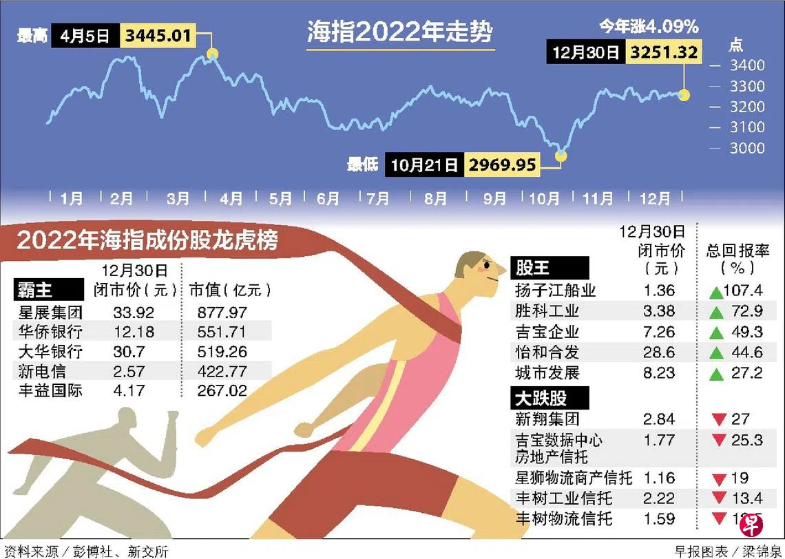总回报率达8.3% 海指亚太区一枝独秀今年上扬逾4%订户赠阅文章展望2023年,虽然通胀和利率能否见顶仍是未知数,全球经济增长明年很大可能放缓,但受到银行股的有力支撑,市场人士看好本地股市将能继续带来正回报。新加坡股市突破经济逆风以全年上扬收官,在亚太股市之中一枝独秀。当投资者把目光专注在利率和通胀之间,俄乌战争及中美关系升温令避险情绪进一步高涨,本地股市凭着坚韧股价和稳定派息获得投资者的青睐。回顾与展望本地股市投资理财上一篇美元兑新台币下一篇约50新私宅项目明年推出 提供超过1万2000个单位购买此文章