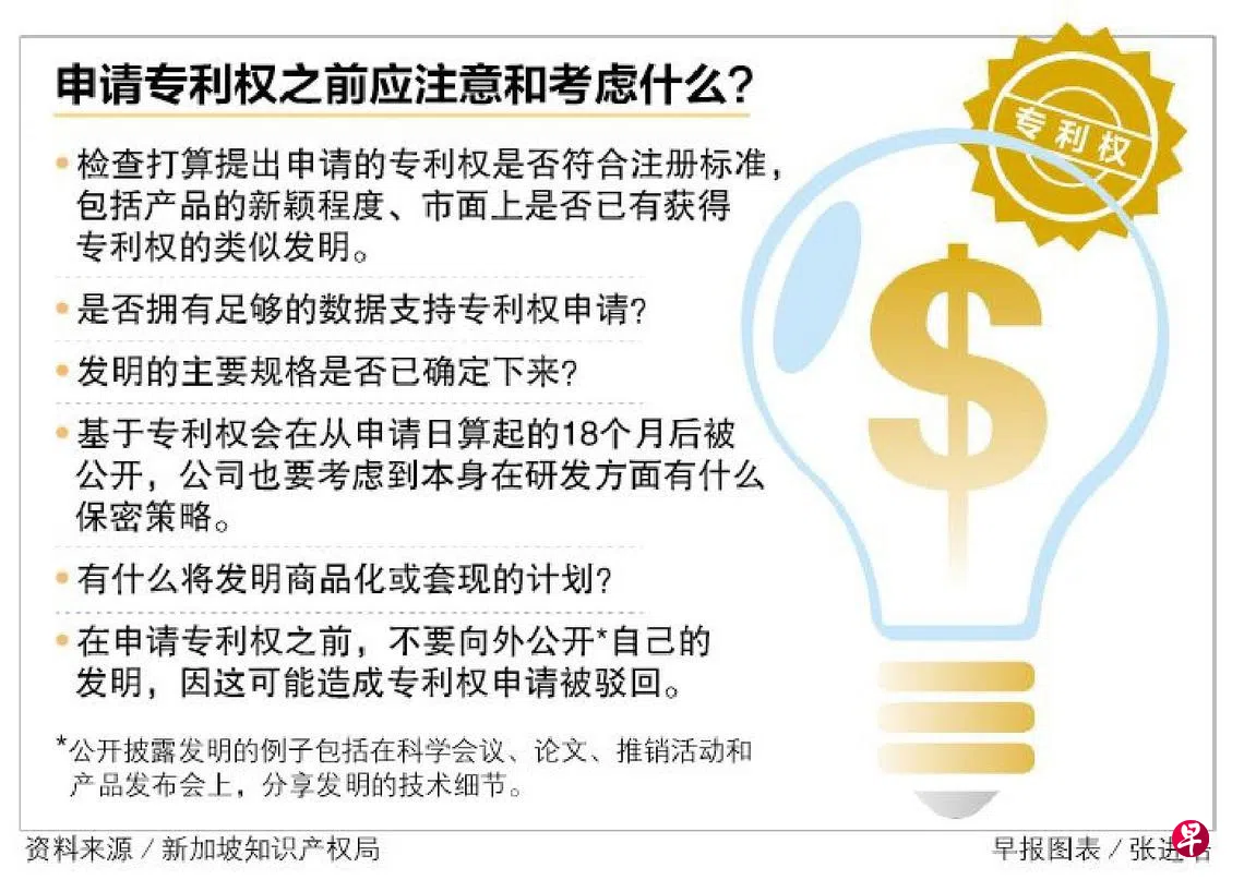 为产品申请专利权 先了解注册时间与费用订户赠阅文章SME商学堂SME商学堂为中小企业解答它们在经营业务时所碰到的各种疑问和困惑,同时就相关课题访问业界的“过来人”,请它们分享自己的成功经验,为企业提灯引路和提供参考。问:什么是专利权?获得专利权有什么好处?中小企业上一篇垃圾变家具赋予废物新生命下一篇新加坡银行采纳 《投资者尽责治理原则》购买此文章