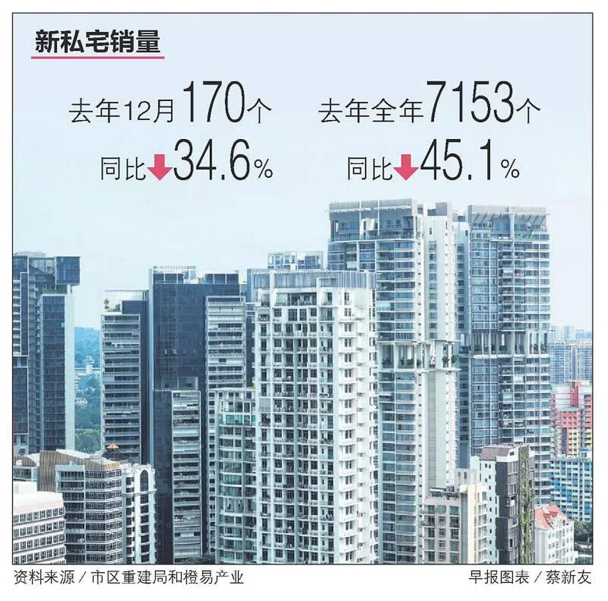 本地去年12月新私宅销量持续下滑,环比减少34.6%至170个单位,全年新私宅销量则比前年下降45.1%至7153个单位。