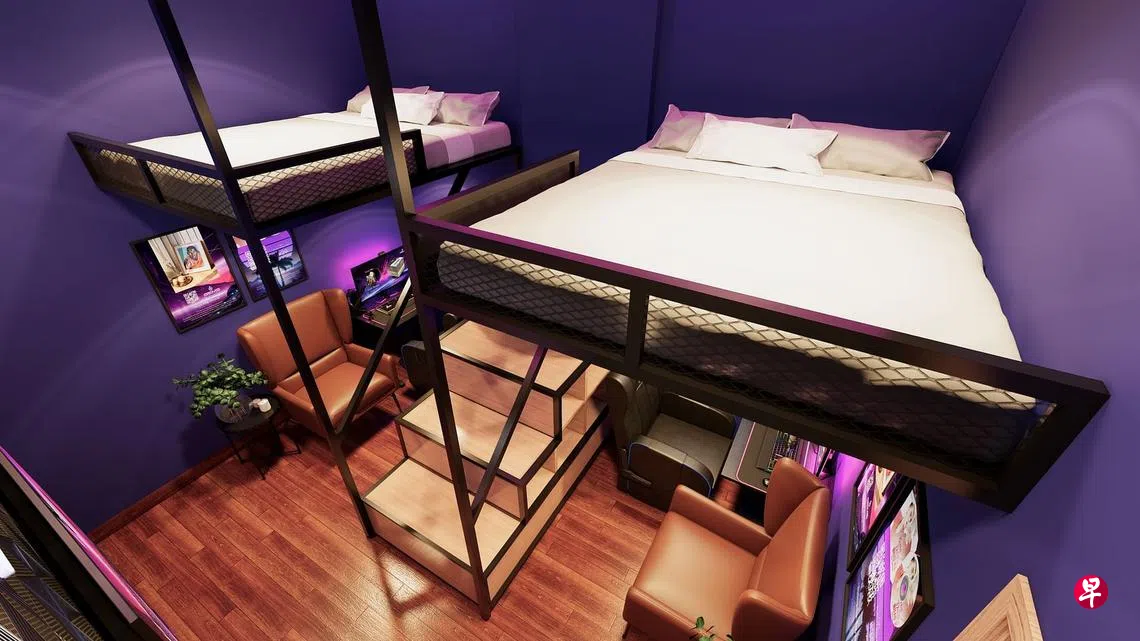 东南亚最大的电竞酒店业者Arena eSports Hotel计划今年第一季在武吉士村(Bugis Village)开设本地的第一家电玩主题旅店。客房从最基本的上铺休息睡觉、下铺专打电玩,到能容纳五名玩家与教练同住同训的大房。开放式休息空间也设有5对5的电玩区。