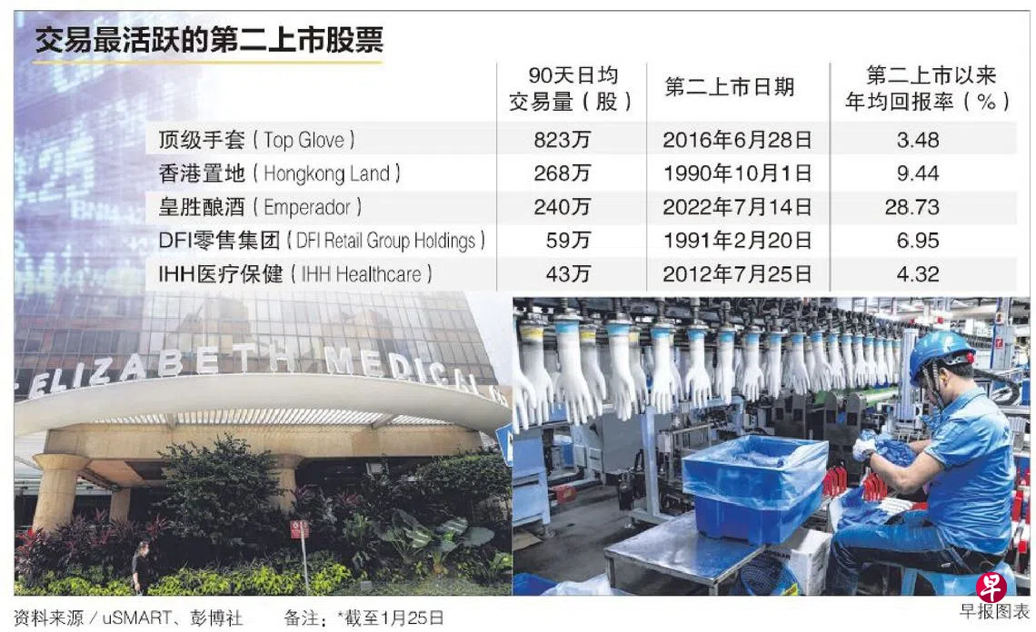 盈立证券uSMART整理彭博社截至1月20日的数据显示,以过去90天的日均交易量来看,交易最活络的股票依序是顶级手套(Top Glove)、香港置地(HongkongLand)和皇胜酿酒。
