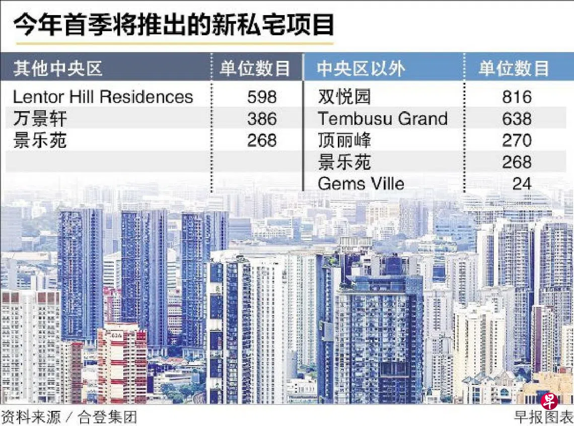 根据合登集团(Huttons)整理的市区重建局的数据,预计今年首季推出的八个新项目会提供约3275个单位。其中,大众化私宅有1252个单位,中档私宅有2023个单位。有七个项目是超过250个单位的较大型项目。