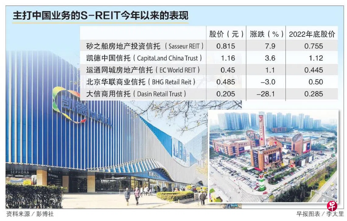 中国重新开放边境给当地零售业的前景带来曙光,但新一波疫情和全球经济放缓,仍给市场的复苏蒙上阴影,高利率环境可能冲击主打中国业务的本地房地产投资信托(S-REIT)的每单位派息。尽管如此,当中个别信托仍受到分析师青睐。