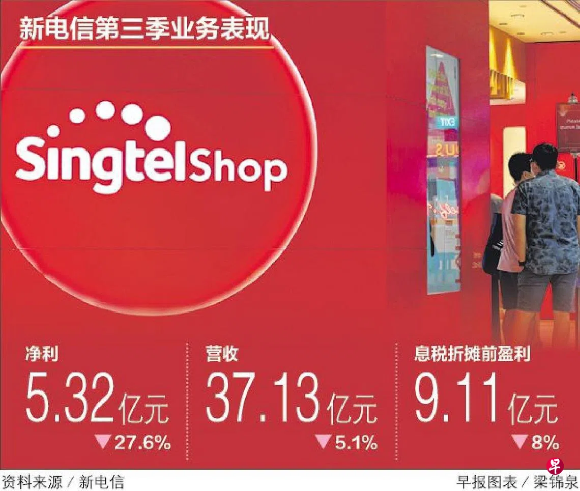 新电信(Singtel)截至去年12月底的第三季净利同比下跌27.6%至5亿3200万元。
