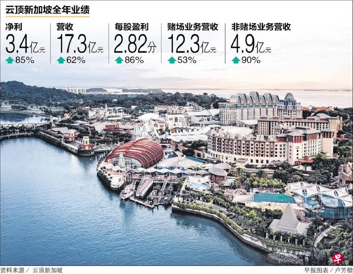 去年下半年旅游业加速复苏,云顶新加坡(Genting Singapore)全年营收和净利皆取得双位数增长,其中全年净利增长85%至3亿4010万元。