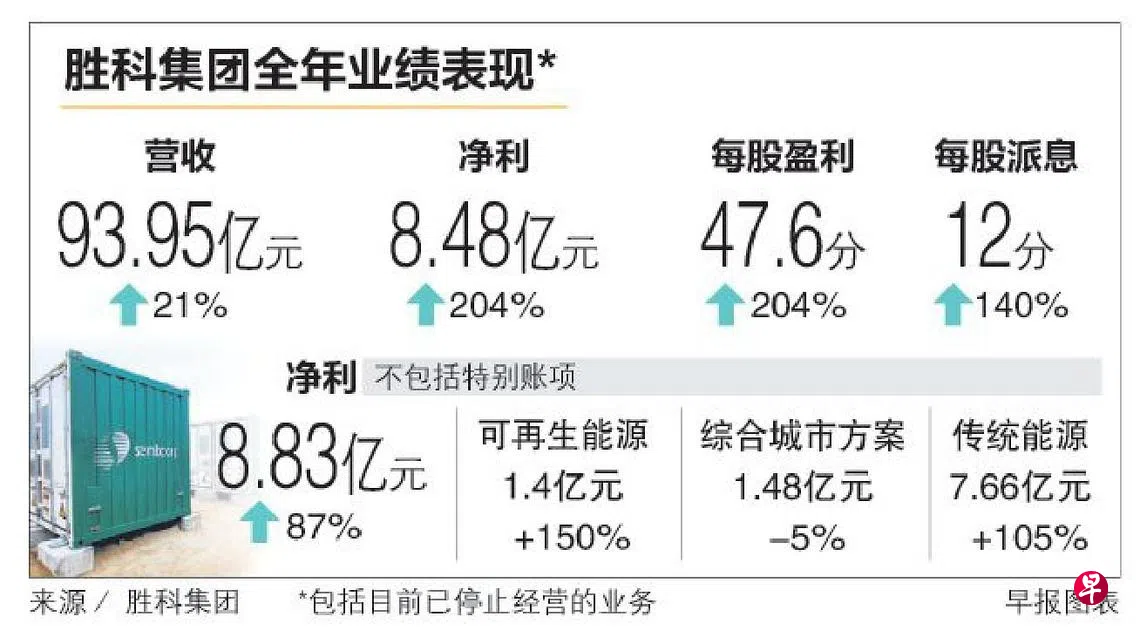 可再生能源业务去年净利劲增150%,主要是中国项目以及新加坡太阳能资产的较高电价带动;传统能源业务净利倍增,主要是新加坡和英国业务受益于较高的能源需求和利润率。