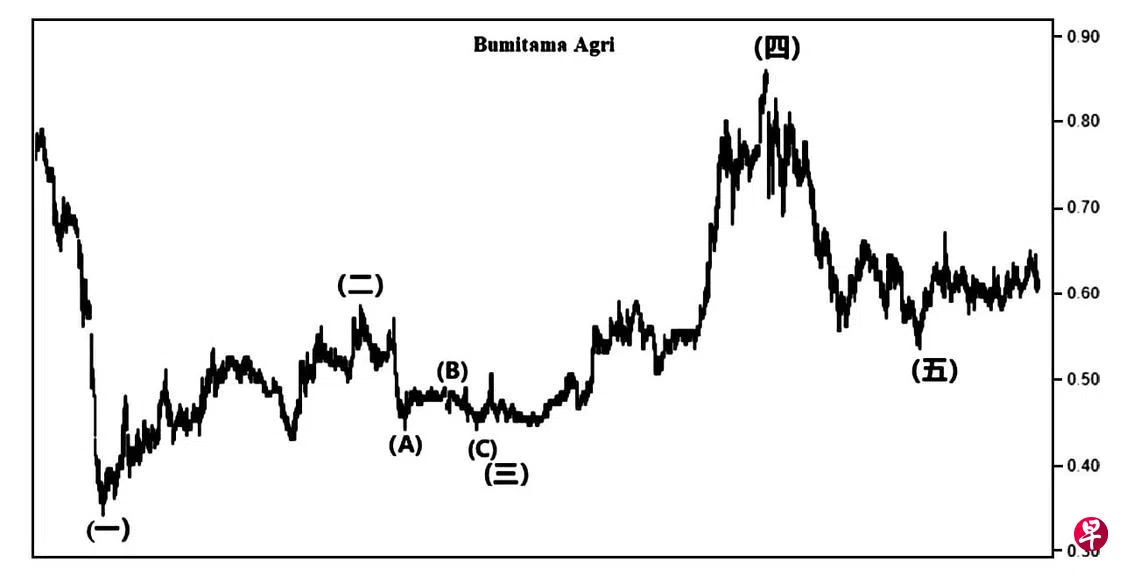 本栏于去年10月1日曾论及这只股票当时的基本目标为0.53元,因此,股价下调或者已经结束,而向上填补介于0.825元与0.855元的缺口也就水到渠成。当时股价为0.575元左右,可是股价过后继续下滑,同年10月17日股价下探0.535元,完成了上述基本目标,遂于当天以“主要转向”信号止跌回升,过后又于每月一杆图以“转向”信号,巩固了一个升势“斜向交叉”的第(五)点。回顾股价于2020年3月23日下探0.34元后渐渐回升,同时形成一个升势“斜向交叉”,2021年元月13日股价升试0.585元完成了图中的第(二)点,遂进入三波回扯。同年3月4日股价下试0.44元结束了(A)波,4月5日股价回扯至0.49元,且以“主要转向”信号完成了(B)波。5月28日股价下跌至0.44元,旋以“转向”信号结束了(C)波,同时为第(三)点画下句号。去年4月21日股价升试0.86元完成了第(四)点,因此,若以上述第(三)及第(四)点价差,计自第(五)点,可测得基本目标为0.955元。