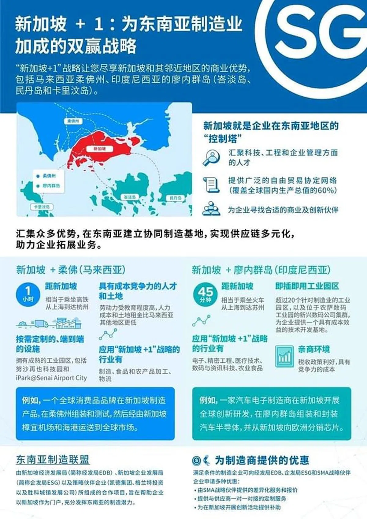 上述联盟通过“新加坡+1”模式,帮助企业借助新加坡和本区域的优势,打造更广大和完整的东南亚策略,使制造商的生产网络多元化,建立更具韧性的供应链。