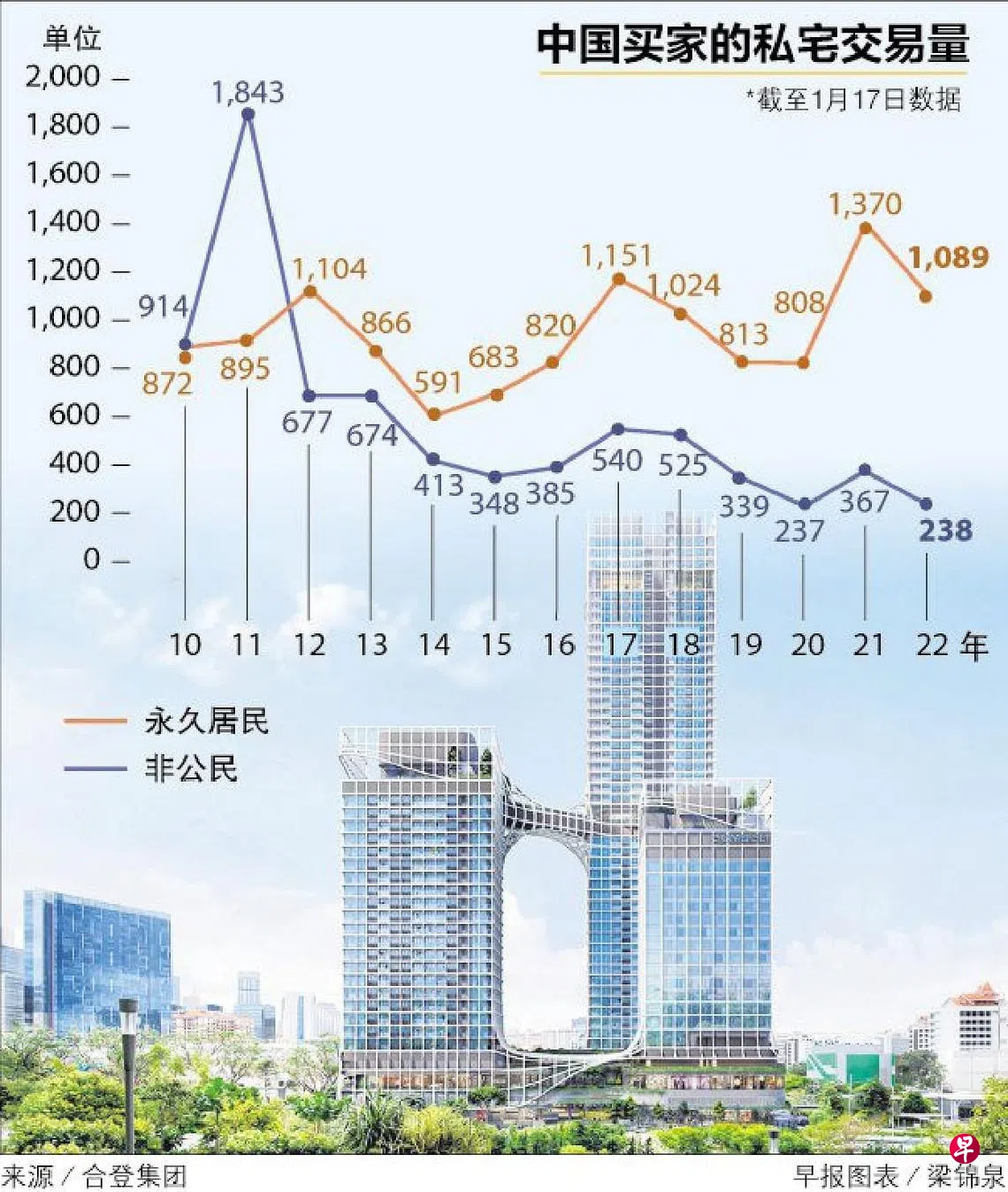 然而,根据国家发展部发布的数据,去年来自中国的外国买家只占整体私宅交易的1%。房地产公司合登集团(Huttons)整理的数据也显示,中国买家的私宅交易量去年同比下跌35%,仍未回到疫情前的水平。